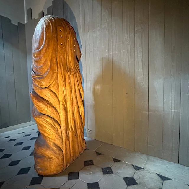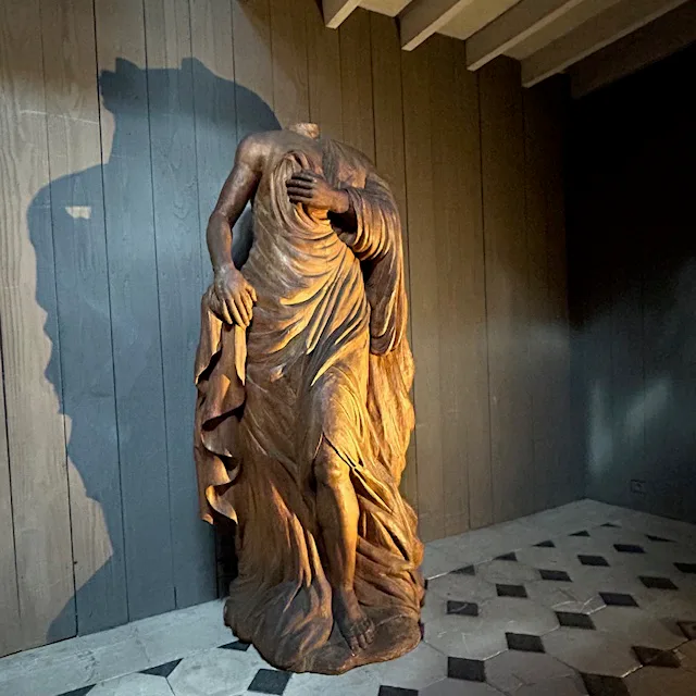 Amazing wooden statue of a fallen angel